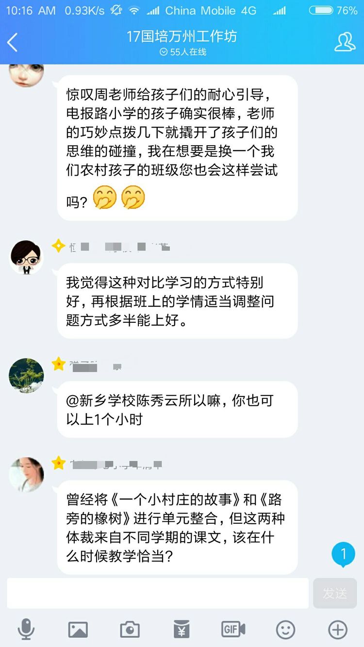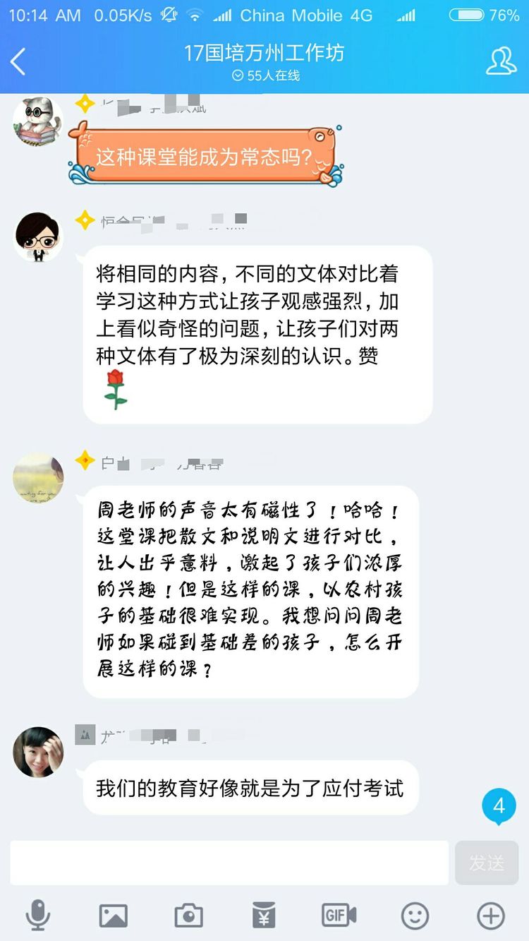 當(dāng)然不是啦,認(rèn)真參加培訓(xùn)的老師們?cè)趺瓷岬猛媸謾C(jī)呢。其實(shí)是周奇老師讓大家對(duì)現(xiàn)場(chǎng)教學(xué)進(jìn)行點(diǎn)評(píng),讓每一位老師將點(diǎn)評(píng)文字發(fā)在QQ群里,然后對(duì)參訓(xùn)老師一一解答疑問。以下分享老師們的點(diǎn)評(píng)