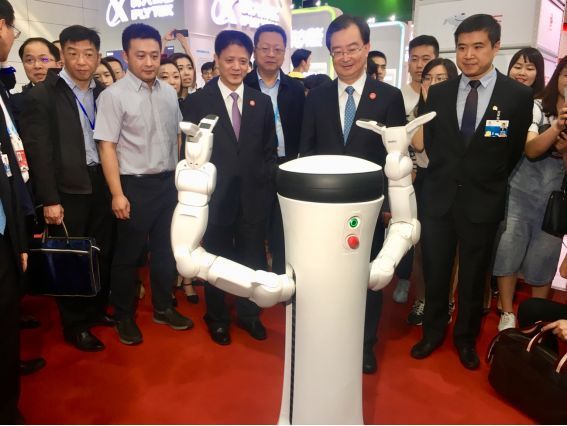 領(lǐng)導(dǎo)視察一維弦自主研發(fā)的機(jī)器人MoRo