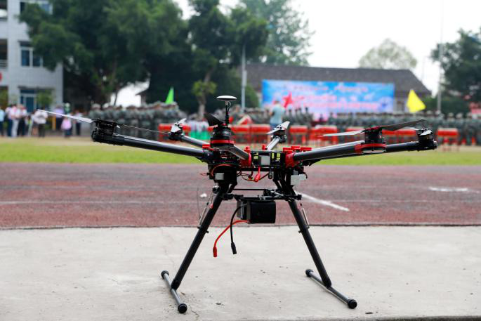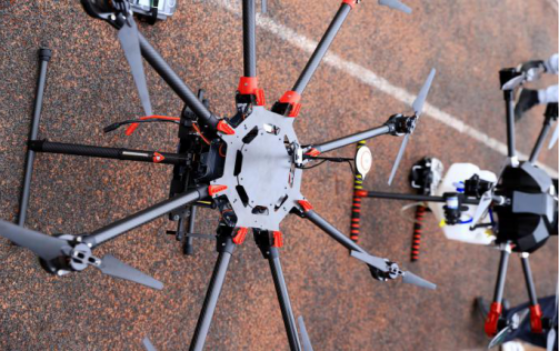 (無人機調(diào)試好后,等待著起飛)