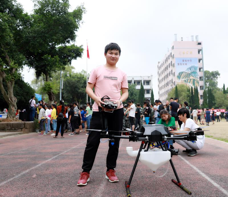 在動態(tài)部分,工作人員對組裝好的幾種無人機進行了仔細的檢測和調(diào)試,并對零創(chuàng)GY-1植保無人機模擬植保作業(yè)和特色以及行業(yè)無人機的機型和特點進行了詳細的介紹,在同學們的熱情期盼下,完成了最終的試飛。