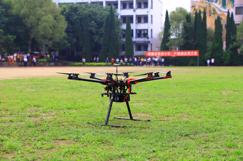 在靜態(tài)部分,工作人員親自為同學們展示了大疆S1000+實訓無人機的組裝、調(diào)試過程,并進行了結(jié)構(gòu)介紹;接著是對零創(chuàng)GY-1植保無人機和大疆精靈航拍無人機做了靜態(tài)介紹;最后是對無人機行業(yè)的應(yīng)用領(lǐng)域和行業(yè)做了簡單介紹。
