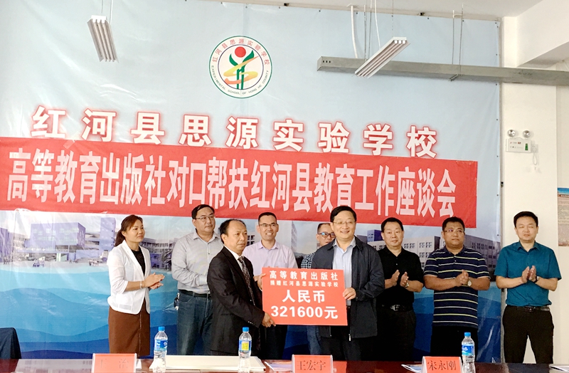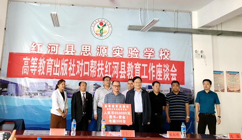 在紅河調(diào)研期間,還舉行了捐贈(zèng)儀式。高教社向紅河縣捐贈(zèng)總計(jì)65萬(wàn)元的資金和圖書(shū)、以及300臺(tái)電腦,用于改善紅河縣基礎(chǔ)教育設(shè)備設(shè)施;向思源實(shí)驗(yàn)學(xué)校捐贈(zèng)32萬(wàn)余元,用于購(gòu)買(mǎi)課桌椅、雙層床架和教學(xué)設(shè)備;代表高教社員工向紅河縣紅十字會(huì)捐贈(zèng)10.4萬(wàn)元,作為120名貧困學(xué)生助學(xué)款。高教社全體員工,用一片愛(ài)心,一份熱誠(chéng),助力紅河脫貧攻堅(jiān)任務(wù),一起迎接美好的明天。