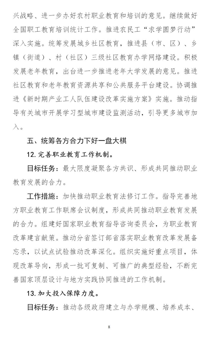 職業(yè)教育與繼續(xù)教育2019年工作要點