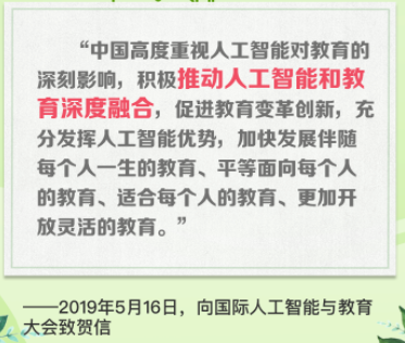 國際人工智能與教育大會上,習近平主題賀信中提到,要積極推動人工智能與教育的深度融合,進教育變革創(chuàng)新,要充分發(fā)揮人工智能優(yōu)勢。