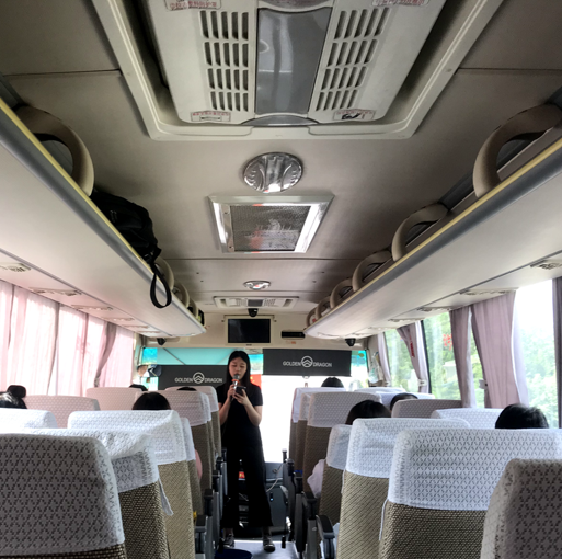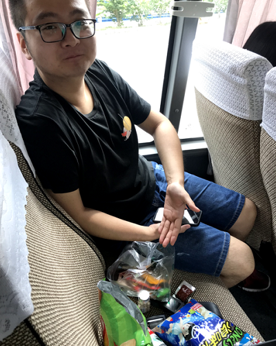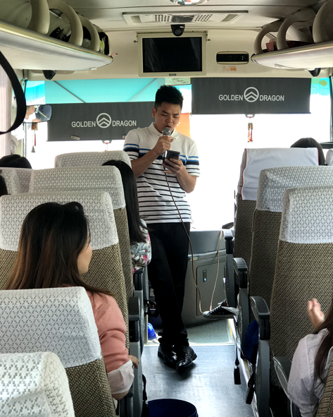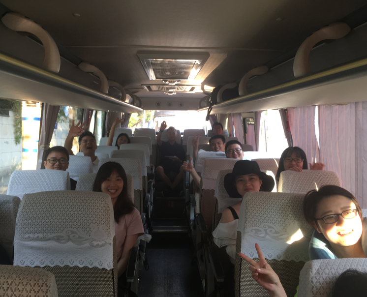 在大巴車上,我們有說有笑,