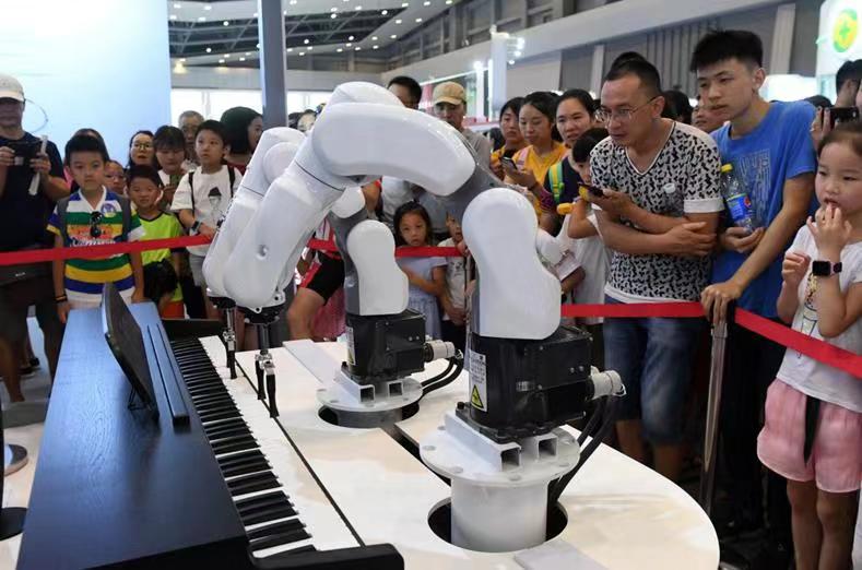 機(jī)械臂樂隊(duì)”在智博會(huì)上演奏鋼琴曲。