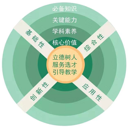 高考評(píng)價(jià)體系由“一核”“四層”“四翼”組成,其中,“一核”是高考的核心功能,即“立德樹(shù)人、服務(wù)選才、引導(dǎo)教學(xué)”,回答“為什么考”的問(wèn)題;“四層”為高考的考查內(nèi)容,即“核心價(jià)值、學(xué)科素養(yǎng)、關(guān)鍵能力、必備知識(shí)”,回答“考什么”的問(wèn)題;“四翼”為高考的考查要求,即“基礎(chǔ)性、綜合性、應(yīng)用性、創(chuàng)新性”,回答“怎么考”的問(wèn)題。